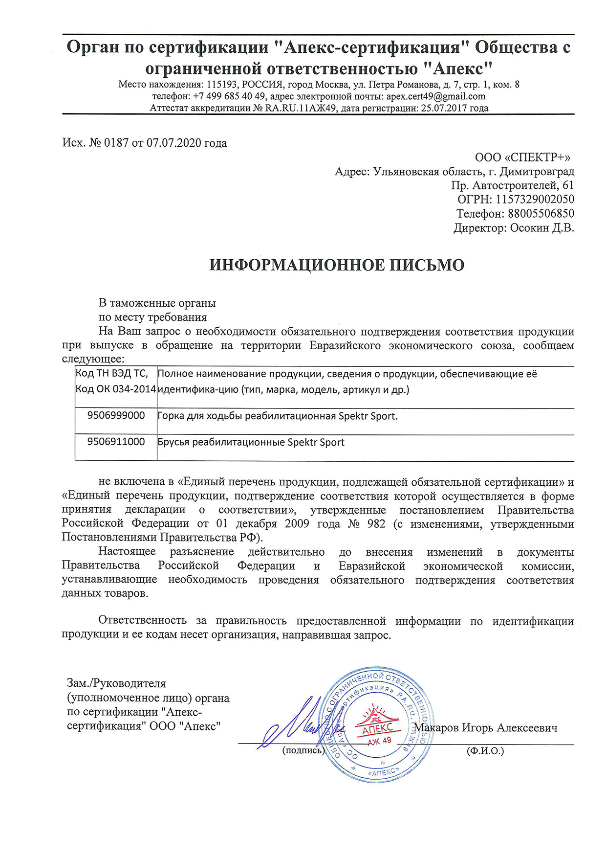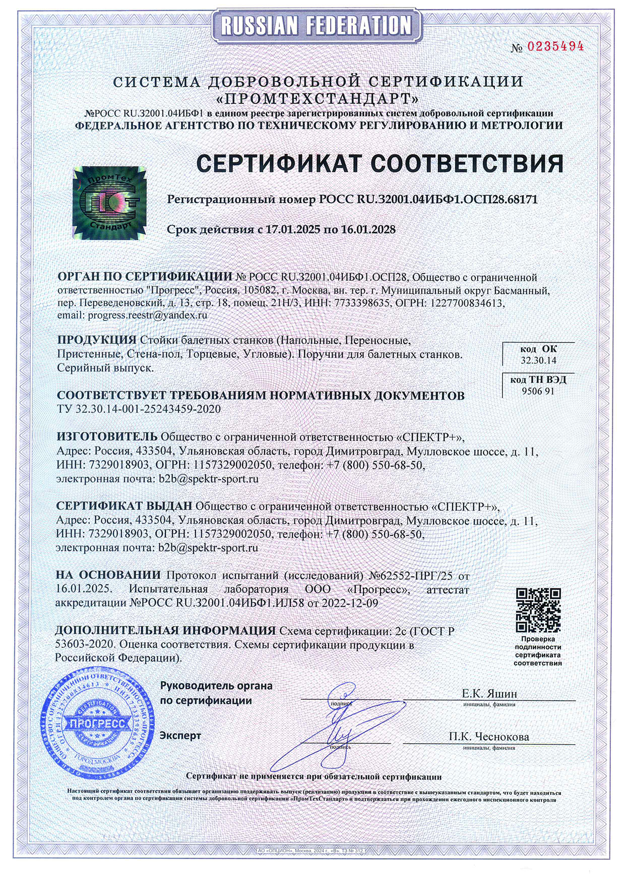 Сертификат соответствия инвентарь 2