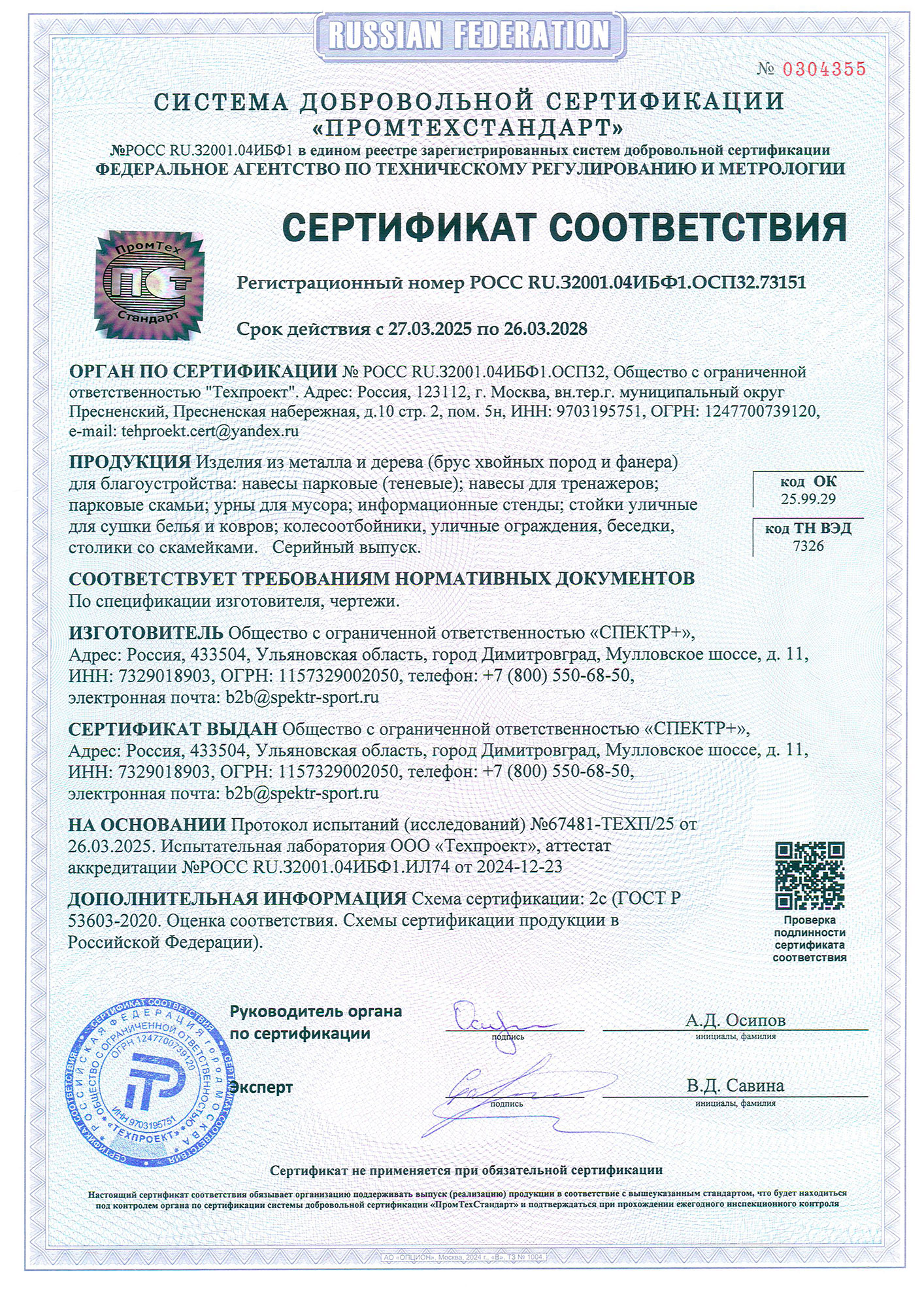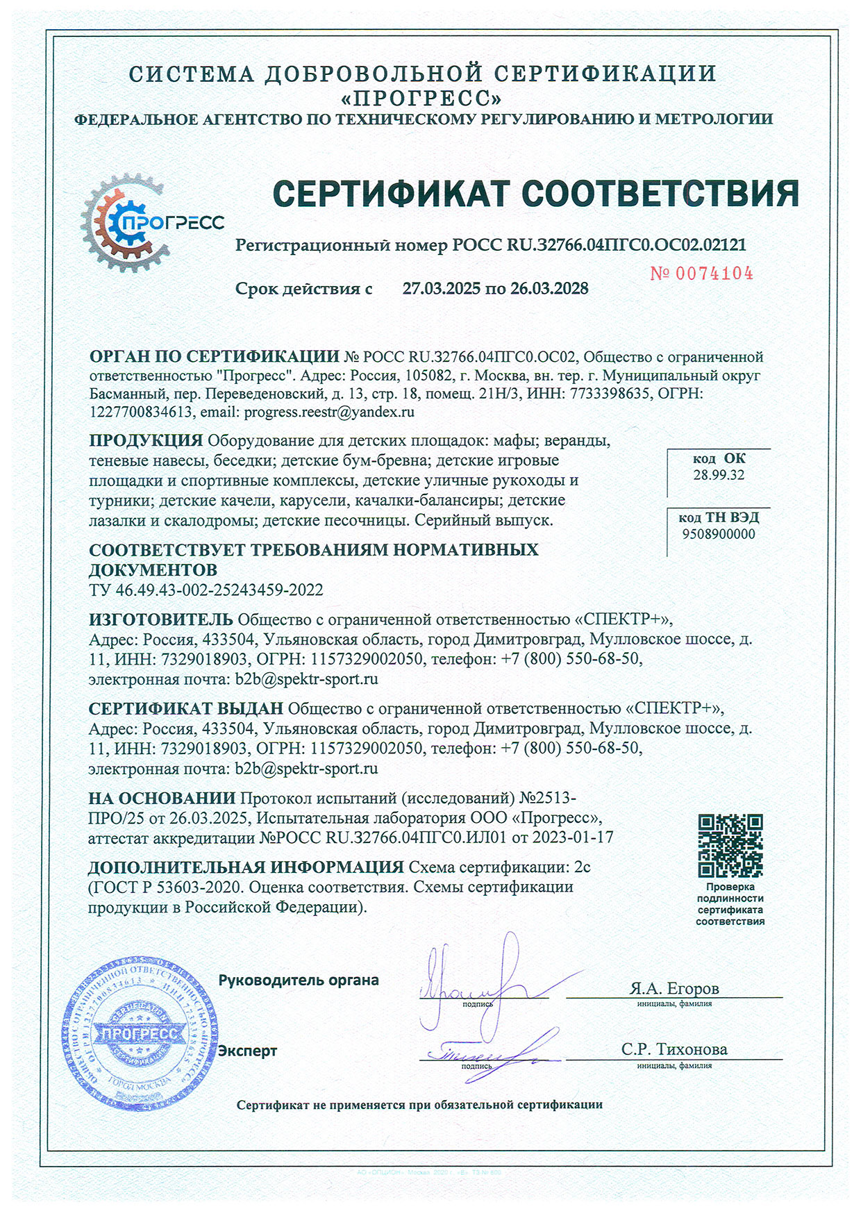 Сертификат соответствия (детские площадки)